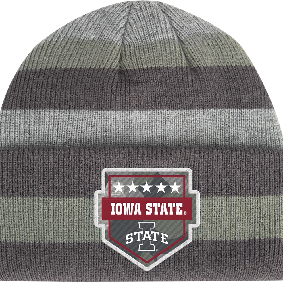 Go Cyclones! Get this Iowa State OHT beanie and everyone will be able to see your Cyclone pride! When you wear this ISU winter hat to the next game, you will stand out in the crowd! This Operation Hat Trick beanie supports our country's troops and features a grey striped body with a camo ISU patch on the front. Get one today to show your Cyclone spirit! Shop the Official Team Store of Iowa State Athletics for Cyclones apparel or gifts! This is an officially licensed collegiate product.