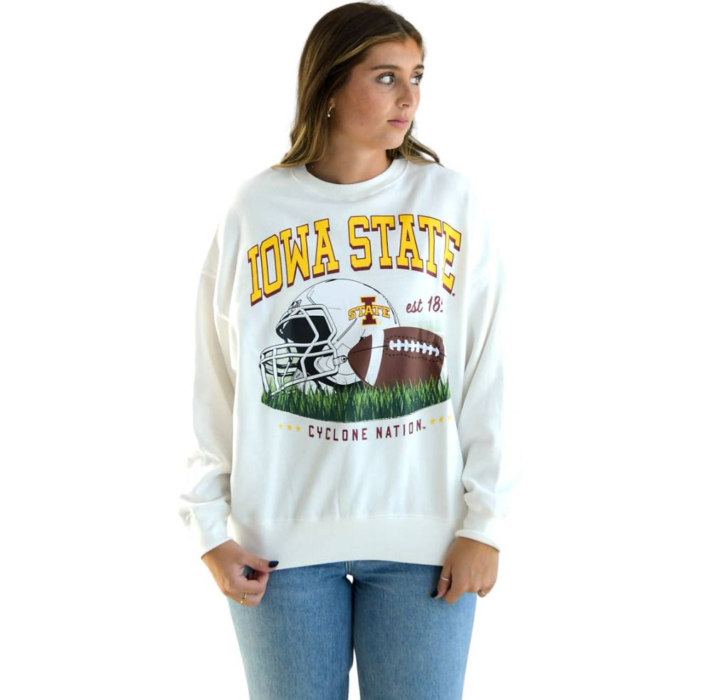Iowa State Football Sweatshirt Women's Oversized White Crew